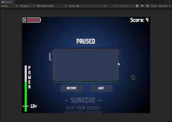If time allows, I'd like to add some battery pickups to speed up the recharge process, a scattershot alt attack that uses more charge, and more enemy variety. If I do make any of these changes, the original Jam version will always be available as a free download.